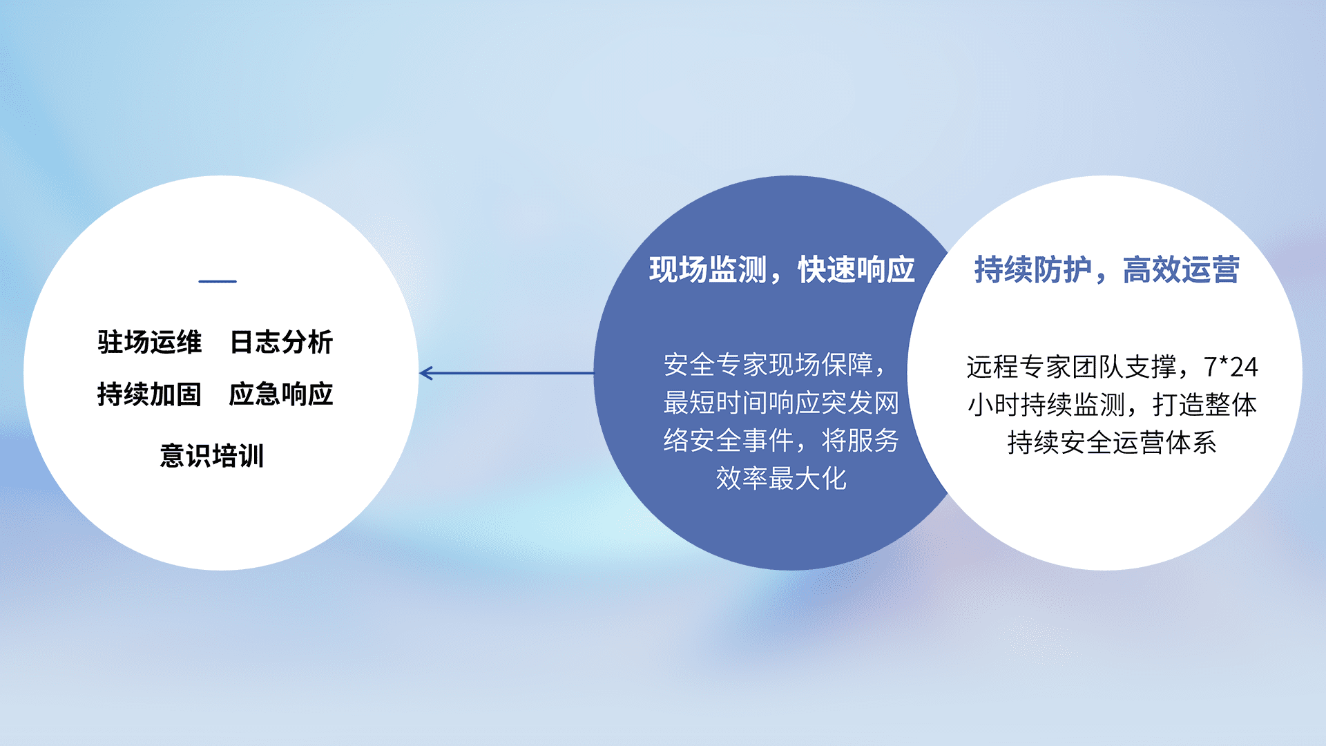 7X24小时持续监测安全事件,保持安全策略有效性,降低资产脆弱性风险,,,精准拦截黑客攻击,,,,减少被黑客利用的机会,,,第一时间遏制,,,降低损失。。